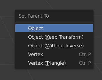 2. Ctrl + P를 눌러 Set Parent To Object를 선택한다.